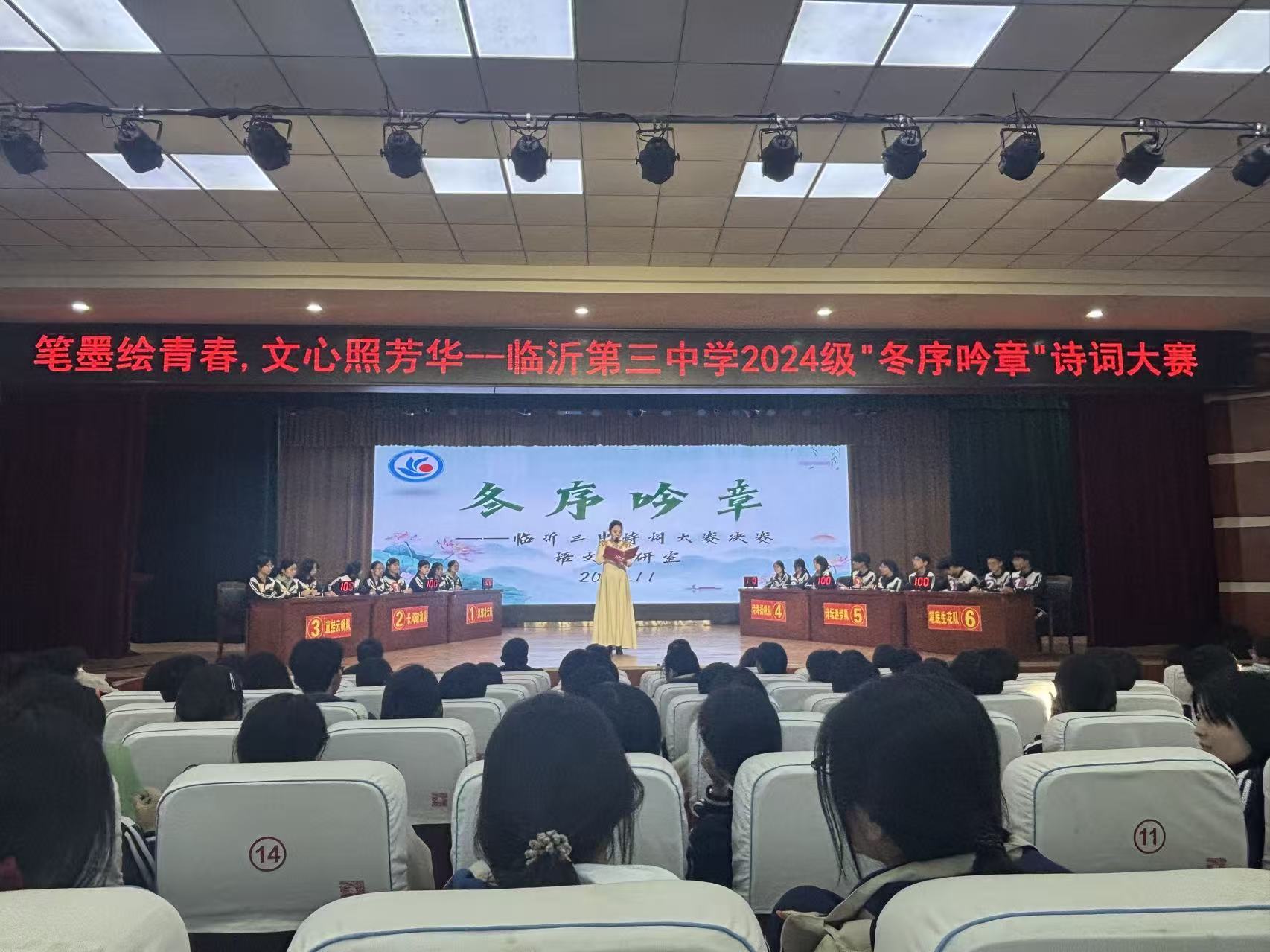 笔墨绘青春,文心照芳华。2025年11月25日下午,临沂三中冬序吟章诗词大赛决赛在校园热烈举行。6个班级的18名选手同台竞技,以诗为媒,共赴这场冬日文化盛宴。大赛环节层层递进...