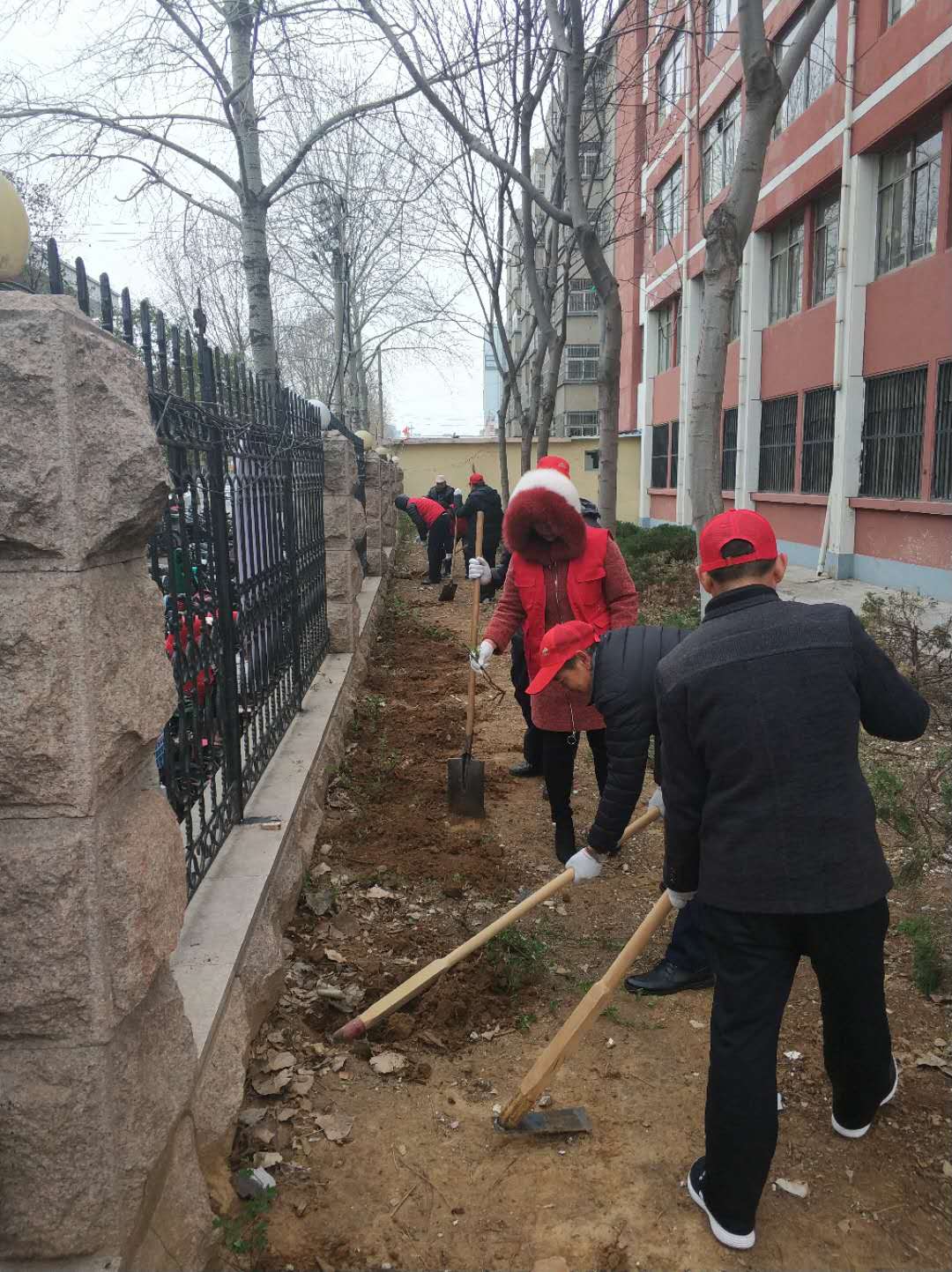 全体后勤人员一大早,带着铁锨、䦆头、水桶,来到了校园的北面的绿化带进行植树活动。挖坑浇水,扶苗培土,干得热火朝天,栽下了一颗颗希望之树。明年的春天,这里将是一片勃勃生机。